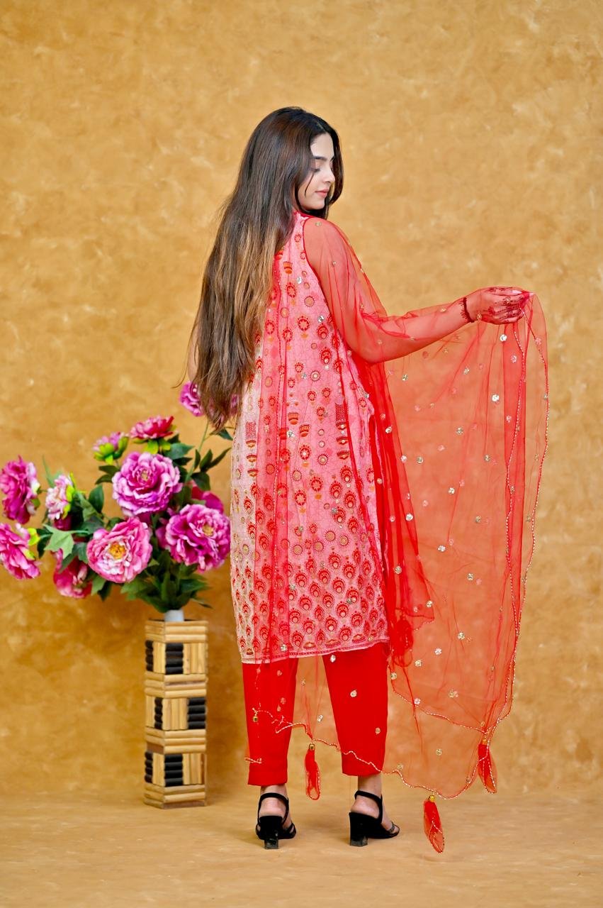 π Complete Kurta Set β Kurti with matching pant and vibrant red dupatta