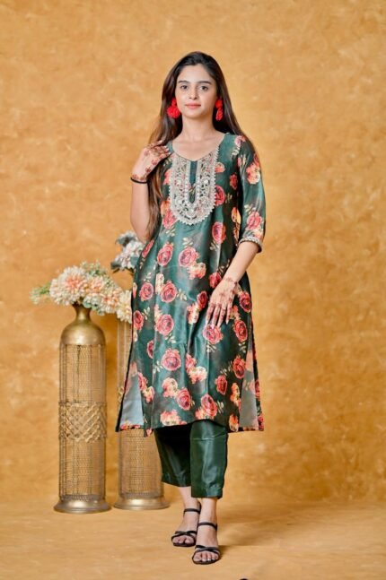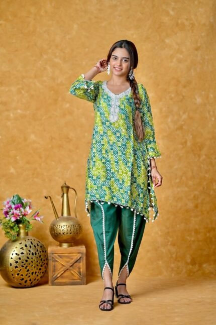 Heer Kurti Set – Printed Kurti With Green Pant