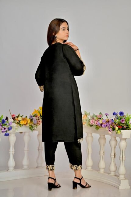 Malika 3-Piece Kurta Set – Gold Embroidery Tube, Black Kurti & Pant