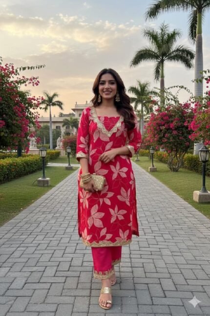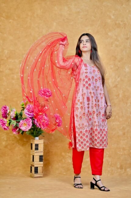 Gulabo kurti set Printed pink kurti with pant